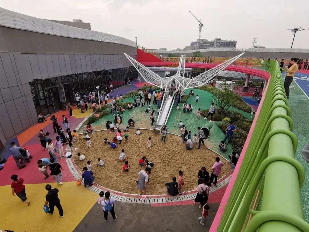在南翔印象城MEGA的高区营造中,值得一提的莫过于屋顶花园。购物中心的屋顶空间成为了自然、开放的。通过场景打造创新、成为了新的客流发动机。把平时空间利用率很低的屋顶,变成了人气磁场,充分发挥了客流的喷淋效应。屋顶花园则向消费者提供星空跑道、宠物乐园、儿童游戏区和户外运动场,无论是带着宠物还是孩子前去,都能够有新奇而放松的体验。