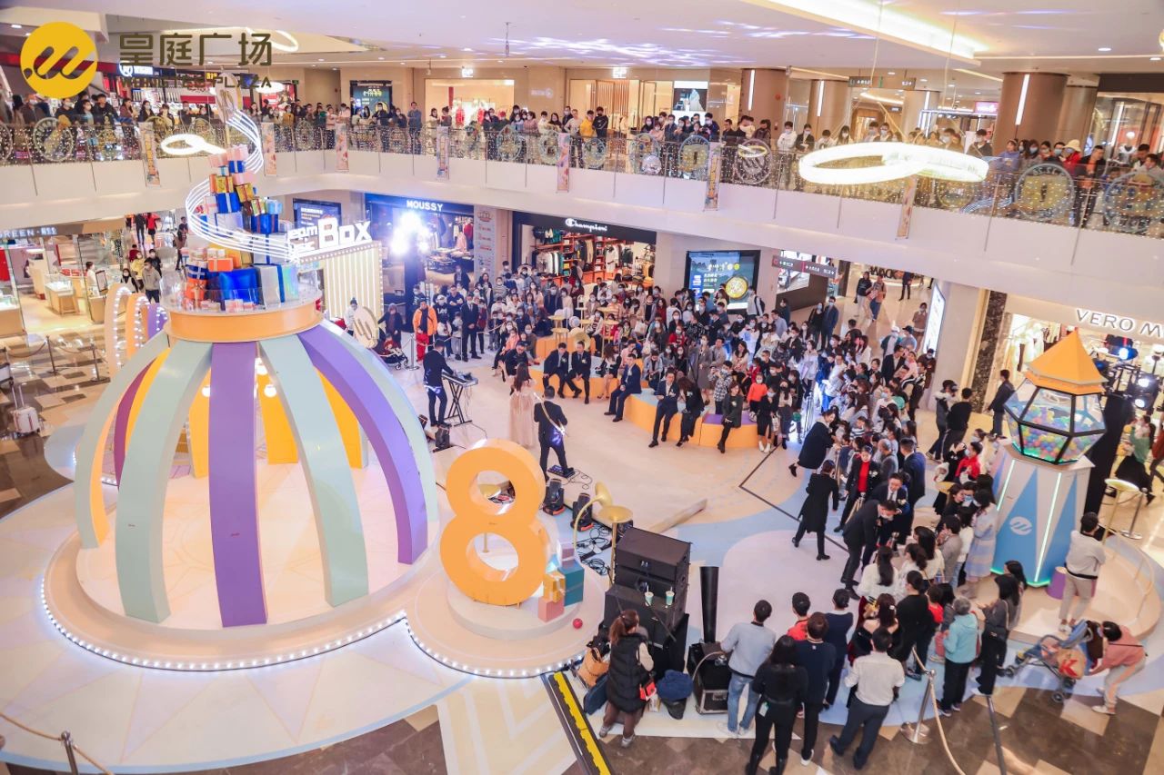 此次8周年庆,皇庭广场延续“深圳CBD首席社交型MALL”的项目定位,并通过贴近Z世代客群的喜好及消费需求,结合当下新潮的网红打卡模式,通过SP+PR等活动,在线上及线下进行多维度传播,打造狂欢8.0的皇庭时刻,为顾客呈现一场多元化、年轻化、潮玩化的创意周年庆。