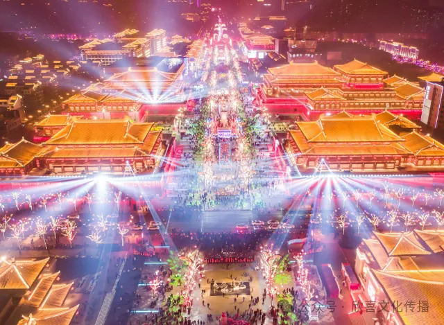 街区始建之初即以盛唐文化为底蕴,整体以“唐”文化为主线,构建了“一轴·两市·三核·四区·五内街”的总体布局,全面涵盖唐食荟萃、百艺文创、沉浸式演艺、综合商业等多种业态,并形成了集观光游憩、文化休闲、特色餐饮、购物娱乐等多位一体的文旅融合新业态发展模式。
