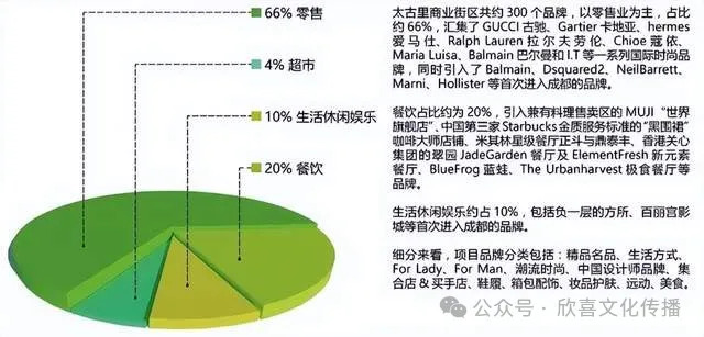 商业地产项目能够为消费者提供何种的业态组合将直接影响辐射客群的年龄结构、职业范围及购买力强度,进而影响项目的经营表现及利润指标。成都远洋太古里融合了零售、餐饮、书店、影院、生活方式等多种业态。