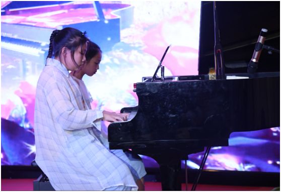 紧接着是艺炫颖学员为我们带来了四手联弹《十个小印第安人》 《草堆中的火鸡》 ,优美动人、情真意切、极富有感染力。