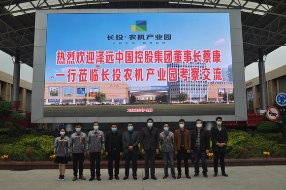 为推动园区复工后招商工作的开展,应国泰公司邀请,2020年4月21日,泽远(中国)控股集团董事长蔡康一行莅临长投农机产业园考察交流。国泰公司董事长丁浩、副董事长、总经理郑旭松、常务副总马作平及公司各部门负责人热情接待、陪同考察。