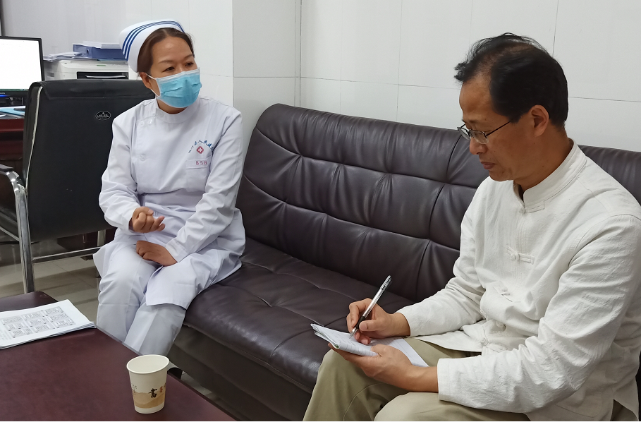 在业务院长沈永军办公室,他深刻的了解了通许县人民医院在这次“新冠抗疫”中所付出的心血汗水和泪水。在抗疫的关键时期沈院长在一线连续工作,他们家三个医生一个护士都在医院,最担心他身体的是老伴马爱仙,没想到的是已经放了3个支架的老伴由于担心沈院长的身体她却住院了,孙子打电话:“爷爷你回来吧——奶奶住院了”.....