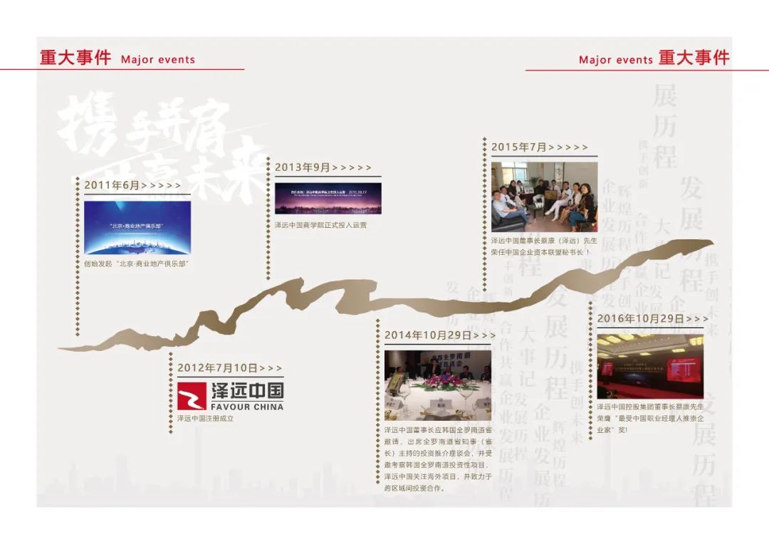 泽远中国控股集团有限公司,简称“泽远中国”(英文“FAVOUR CHINA”),由5大核心板块组成:数字科技、泽远地产、泽远文化、泽远资本、中国商业资本联盟(FA俱乐部联盟)。泽远中国—中国主题地产的发起者和领导者,中国存量资产价值重塑机构,是中国首个以“推动中国新城镇化升级,打造城市名片“为使命,并亲力实践的企业!