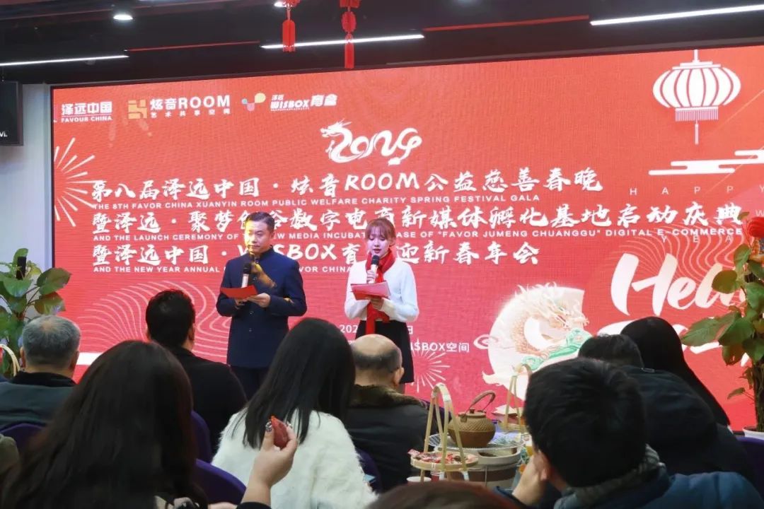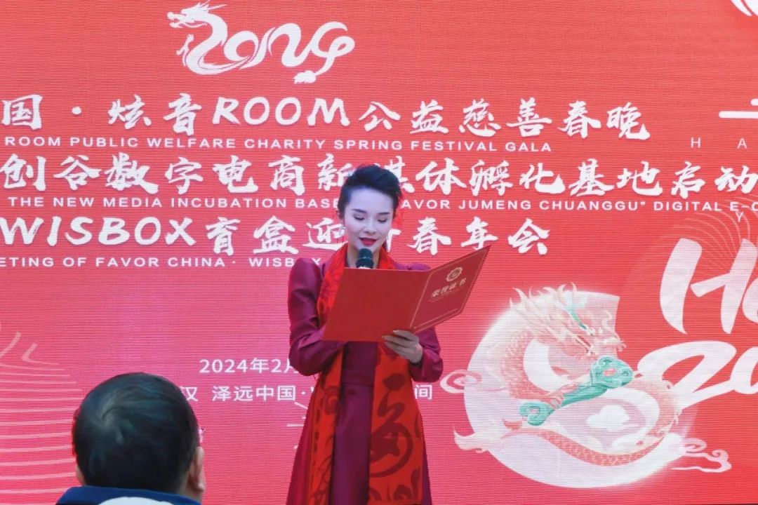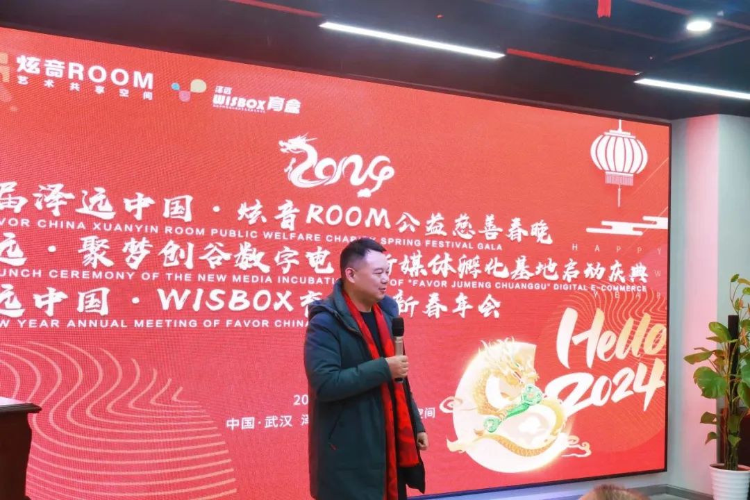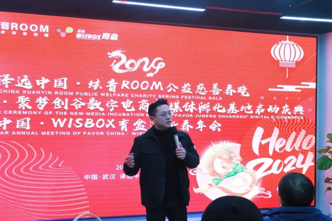 2024年2月2日,由泽远中国集团、中国商业资本联盟CCCU、WISBOX育盒、炫音ROOM数字共享艺术空间、聚梦泽远·聚梦创谷数字电商孵化基地、深圳静鹿书画集团、深圳小桔灯文化发展有限公司主办,泽远中国·WISBOX育盒承办,中亨泽远(武汉)商业管理有限公司、泽远中国商学院联合主办的“2024第八届泽远中国·炫音ROOM公益慈善春晚暨泽远·聚梦创谷数字电商新媒体孵化基地启动庆典暨泽远中国·WISBOX育盒迎新春年会”在泽远中国·WISBOX空间多功能厅正式开幕!