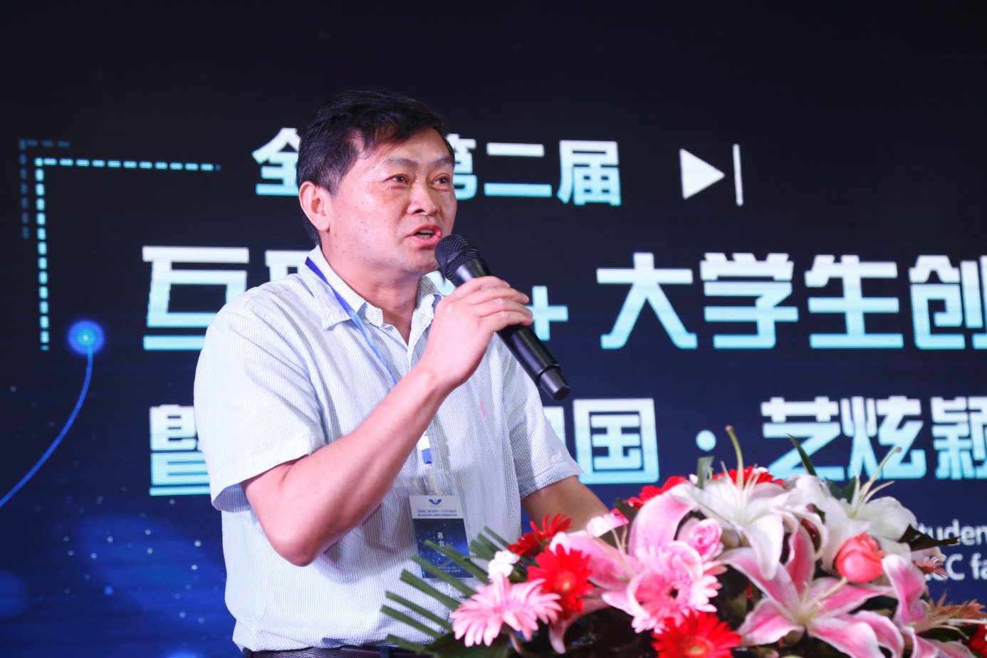 湖北工业大学党委副书记、武汉校友联盟轮值主席蔡光兴上台宣布全国第二届大学生创业节开幕