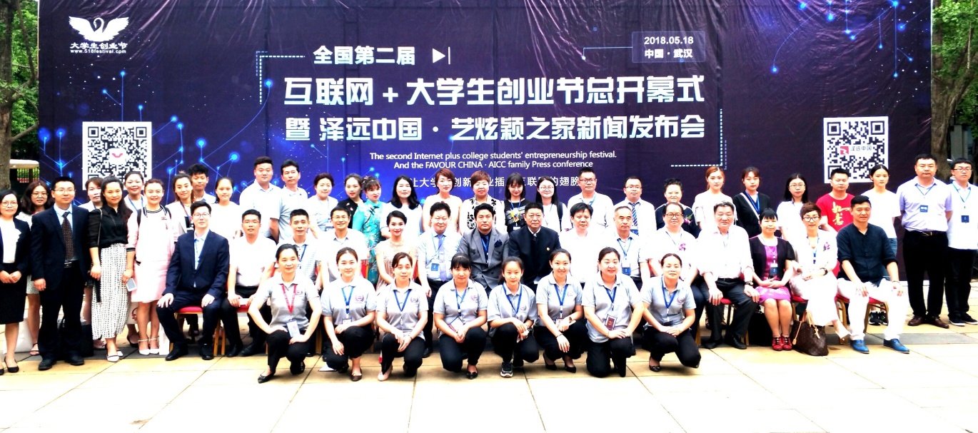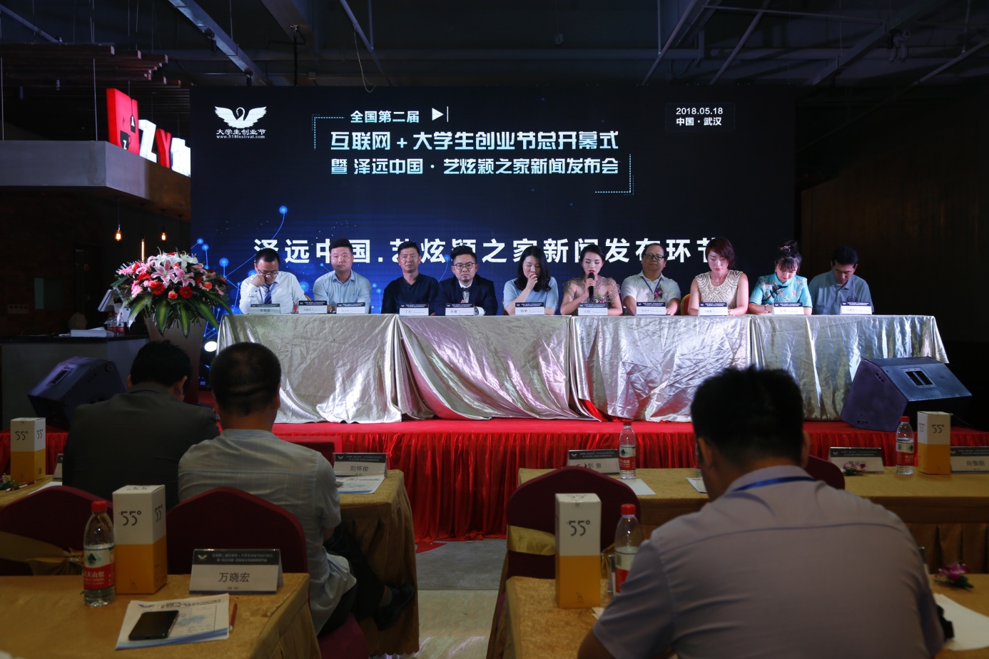 5月18日,由全国互联网+大学生创业节总组委会、泽远(中国)控股集团主办,泽远中国·艺炫颖之家承办,中国商业资本联盟、湖北省企业创新发展促进会、武汉二七实业、湖北商业地产联盟、中智科博(北京)产业研究院、中国儿童产业基金联盟、中华博士会、中国国花产业联盟、青苹果之家、湖北企业家杂志、众创网(武汉)科技有限公司、企业与市场网、泽远中国商学院、艺炫颖国际(AICC)、中国828互联网+中国校企联盟总组委会、中国双12大学生就业节组委会、泽远传媒、中亨商管、恒达泽远、FA海外音乐家俱乐部联合举办的全国第二届互联网+大学生创业节总开幕式暨泽远中国•艺炫颖之家新闻发布会在武汉光谷隆重举行。