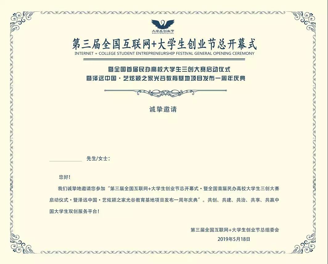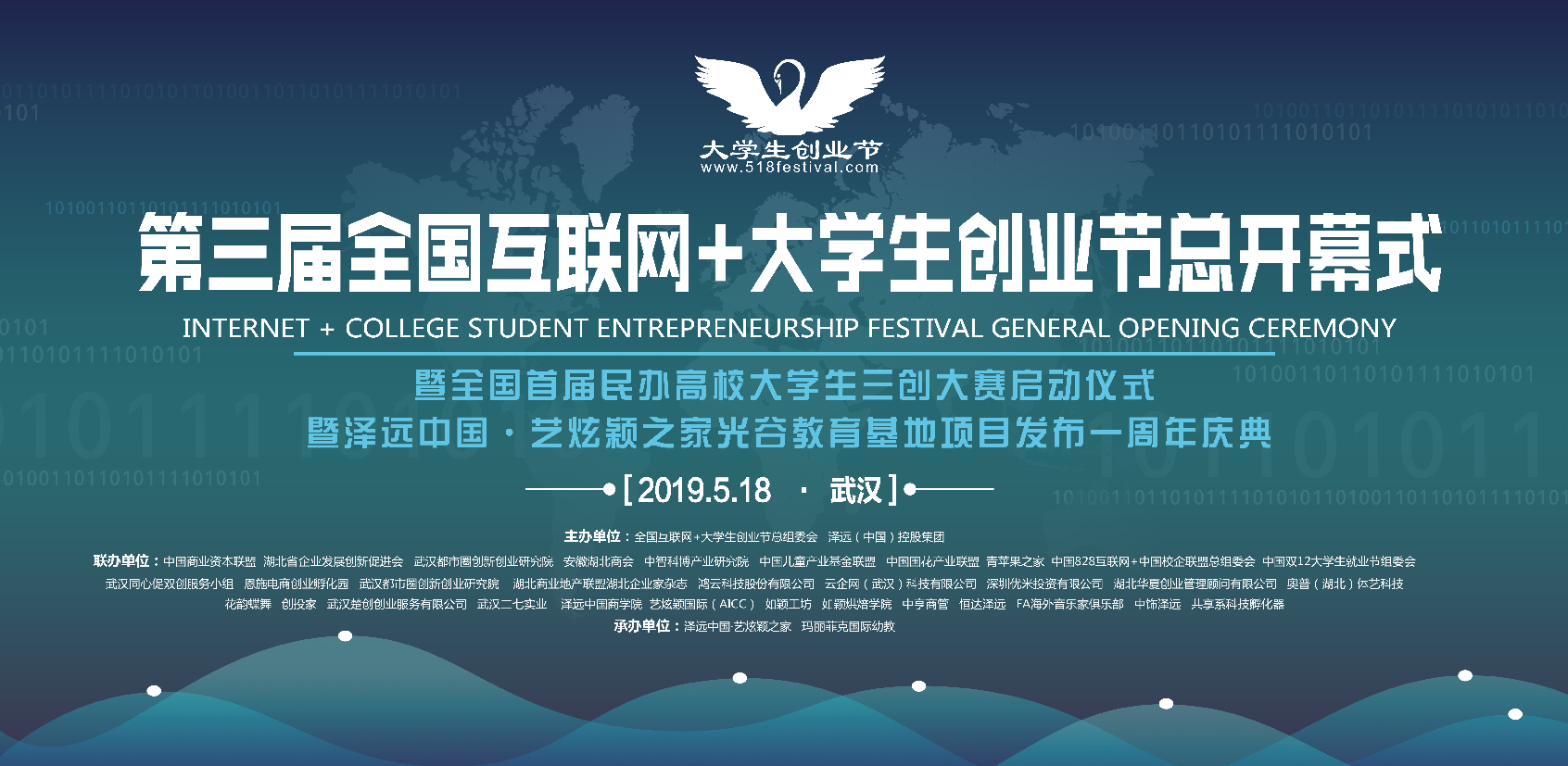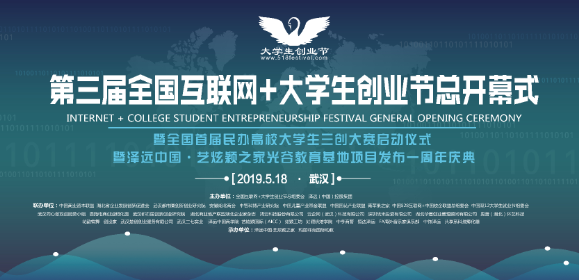 “全第三届全国互联网+大学生创业节总开幕式暨全国首届民办高校大学生三创大赛启动仪式暨泽远中国·艺炫颖之家光谷教育基地一周年庆典”![]()