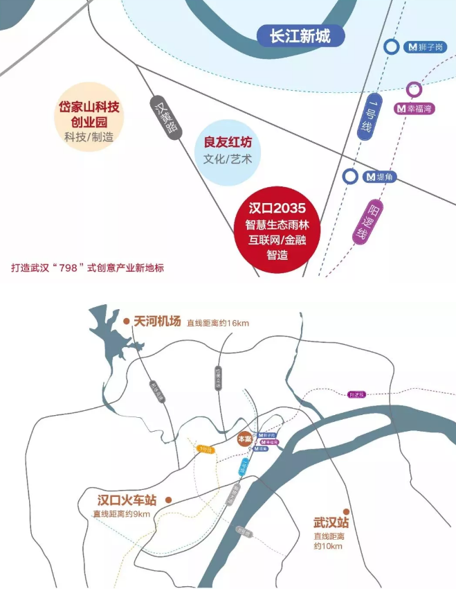 汉口2035落位于长江新城启动带,北接长江新城、南接二七滨江商务区。武汉万科首个智慧产业园,新型产业着陆地,为三大产业—互联网+、智慧产业、现代服务业人群提供高端产办园区。周边 3 公里内布局 20 余所小区住宅,约 10 余万常住人口,可供产业办公人群居住。约 19 万方的汉口 2035 产业园,智创多元产业办公空间,多元业态培植产业办公沃土,以完善的办公配套、服务配套,为入驻企业提供一体化的办公居住空间。