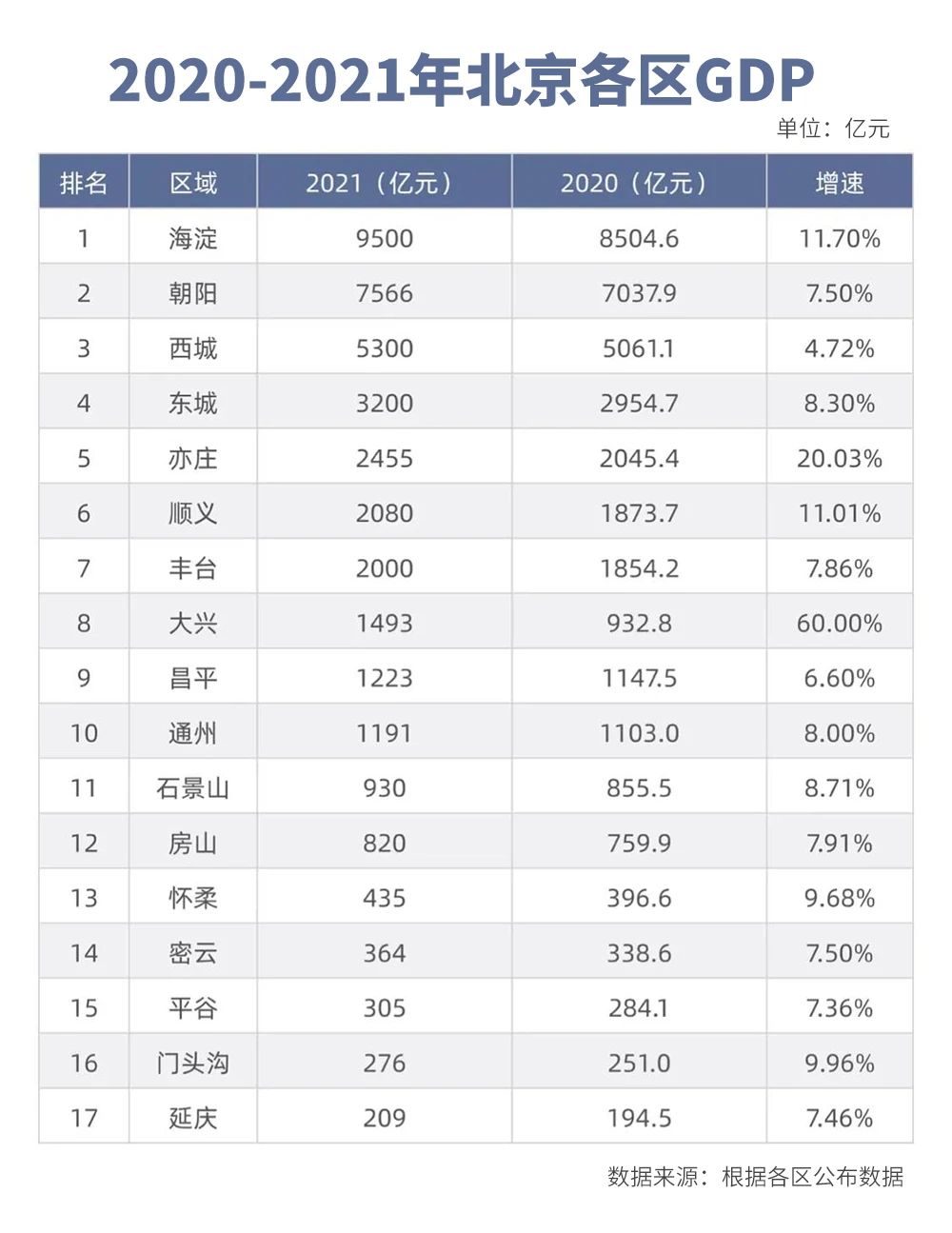 近期,北京2021年GDP数据出炉,北京首次破4万亿元,体现了首都北京强劲的经济实力。而细看各区贡献,除了东西海朝四大强区之外,亦庄跻身第五,GDP近2500亿元,已经超过了丰台、顺义,成为了北京经济中的“新城第一”。