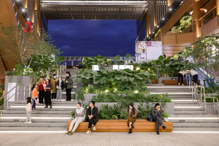 据介绍,ParkTOD模式的内涵,包括:在大公园系统中,营造友好韧性的生态环境,打造可亲可近的疗愈之境、落实低碳行走哲学,并一定程度地恢复土地的自然本性,让绿意与建筑相伴;在大生活系统中,提供多样化的生活选择,打造一系列开放的人文乐园,提供可即刻娱乐的设施,并通过志趣社群的活力来加强社区归属感,重构邻里这层社会连接。杭州万科携手杭州地铁将新的TOD模式“ParkTOD”引入城市枢纽节点的建造与运营,通过“自然本性、疗愈之境、行走哲学、人文乐园、即刻娱乐、志趣社群”6大价值主张,将多层次公共空间及景观绿化,与TOD的复合开发和交通组织相结合,使得轨道交通、产业办公、文化艺术、公共空间、商业与住区完美衔接成为整体,不断赋能建设高水平“轨道上的杭州”,让城市、公园、生活和谐共融。从硬件来看,除了构建一个完整的大公园系统,能容纳不同形态的绿色空间。也就是除了结果上的“大”,更重要的是如何“盘活”,这就充分考验了运营商对土地的整合能力。据了解,天空之城项目除了居住组团内的绿地,大部分绿地面向所有人开放,住户、白领或商家都能参与其中,在日常和周末都能被使用,这就大大提升了景观资源的公共效益。“设计中,我们注重增强人在环境中的参与感,打造‘家门口的植物园’,通过营造不同主题和体验的景观,让人沉浸到环境中,从而获得身心的治愈。”天空之城相关负责人说。传统广场偏重恢弘叙事的表达,人的体验感反而被忽视了,在打造天空公园时,强调与周边建筑的共生关系,围合出一大片无遮挡的草坪,设计中减少了水景面积,但利用高差做出可休息的地台,日常可供居民遛狗遛娃,周末或节庆又能反向赋能天空文化艺术中心(别名:大空艺),提供集市、表演和展览的拓展支持。“我们利用地铁与项目相连的地带,打造地上和下沉广场。地上广场以宇航员、宇航兔等艺术装置来加强地理的识别性,或局部设置吧台座椅,提供访客等候的功能;下沉广场以错落生长的景观和木质材料的运用,削弱建筑带来的冷漠感,给人以生机感。”