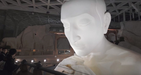 ② IP突出和体验感:问蟾亭是项目的最高点,也是最佳实现景观点,其中的一座跨楼层雕塑成为这有山的名片,同时体验感方面,雕塑手上有一只蟾蜍,游客可以用纪念币去击中三足金蟾嘴中的铃铛,进行获得一次祈福;从商业角度而言,问蟾亭全年门票收入能达到五百万左右。